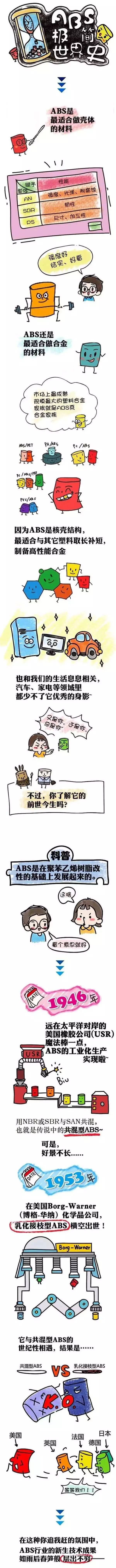 ABS是五大合成树脂之一,其抗冲击性、耐热性、耐低温性、耐化学药品性及电气性能优良,还具有易加工、制品尺寸稳定、表面光泽性好等特点,容易涂装、着色,还可以进行表面喷镀金属、电镀、焊接、热压和粘接等二次加工,广泛应用于机械、汽车、电子电器、仪器仪表、纺织和建筑等工业领域,是一种用途极广的热塑性工程塑料。A