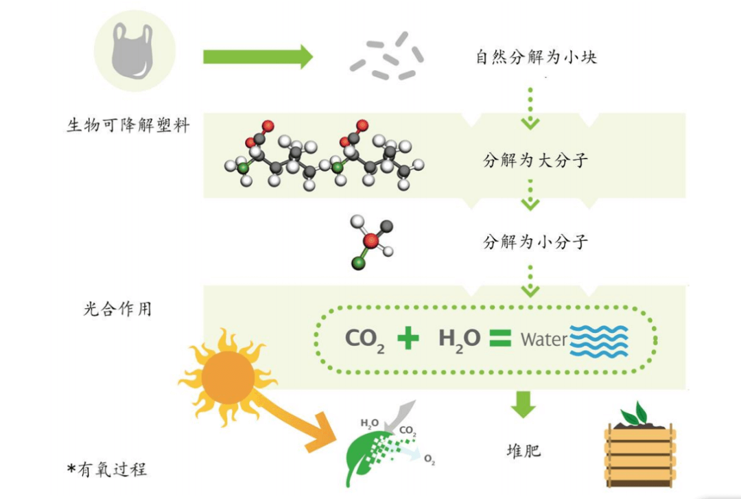 在降解性上,可降解塑料在使用后,可以在自然环境下(特定微生物、温度、湿度)较快完成降解,并成为易被环境利用的碎片或无毒气体,减少对环境的影响;